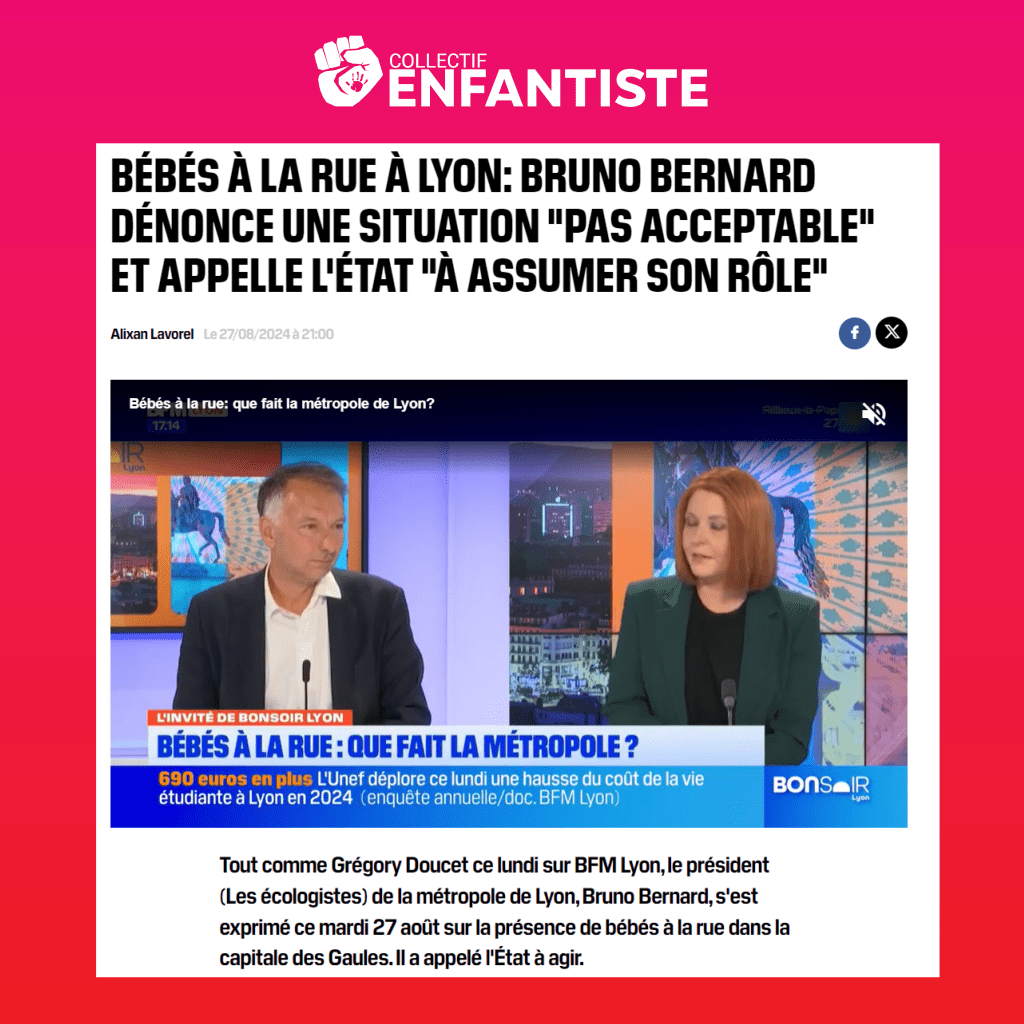 Tout comme Grégory Doucet ce lundi sur BFM Lyon, le président (Les écologistes) de la métropole de Lyon, Bruno Bernard, s’est exprimé ce mardi 27 août sur la présence de bébés à la rue dans la capitale des Gaules. Il a appelé l’État à agir.