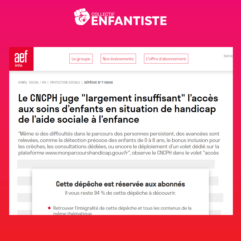 Le CNCPH juge « largement insuffisant » l’accès aux soins d’enfants en situation de handicap de l’aide sociale à l’enfance