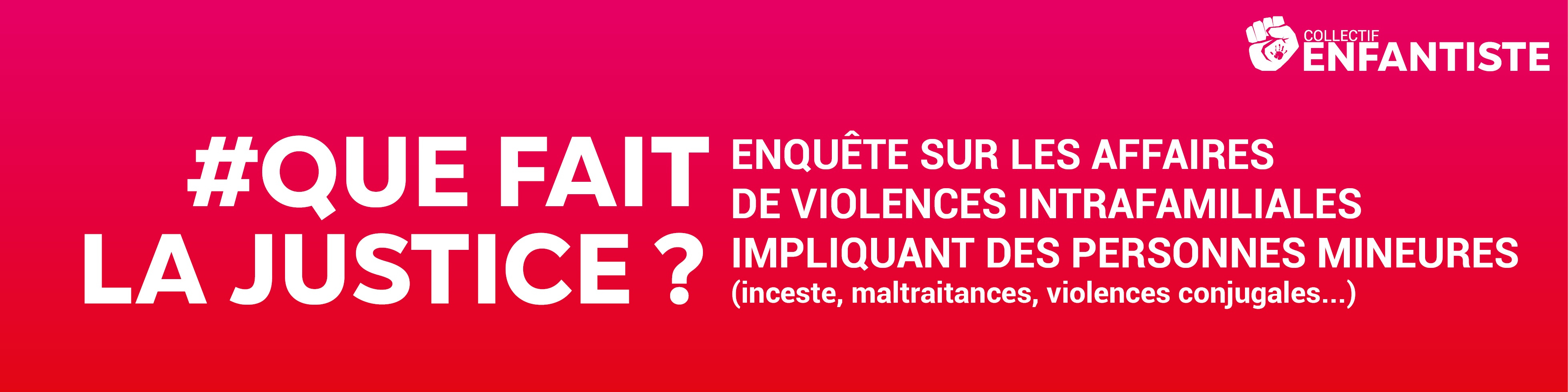 Du 22 janvier au 31 mars, participez à l’enquête nationale en ligne sur les affaires judiciaires de violences intrafamiliales impliquant des personnes mineures. (inceste, maltraitances, violences conjugales vicariantes…)